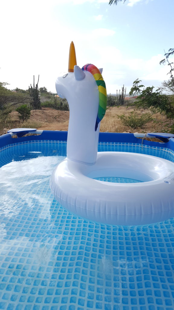 Dus ook op gekke tijden thuis om lekker met je eenhoorn te zwemmen, hihi